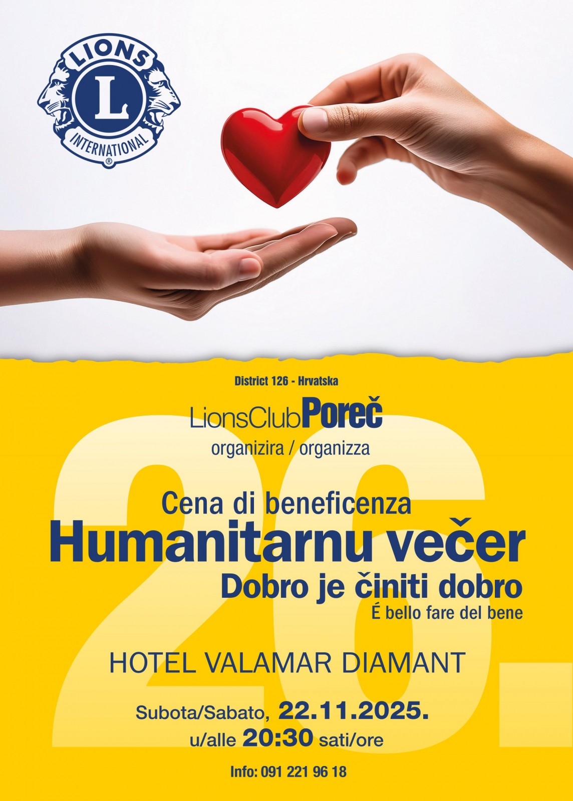 LIONS KLUBA POREČ po 26. PUT ORGANIZIRA TRADICIONALNU HUMANITARNU VEČER KOJA ĆE SE ODRŽATI