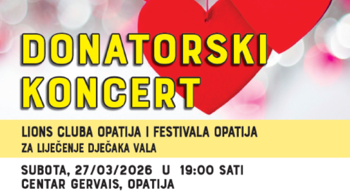 S osobitim zadovoljstvom najavljujemo, u organizaciji LC Opatija  i Festivala Opatija , donacijski koncert koji će se održati 27.ožujka 2026.g s početkom u 19.00 sati u dvorani „Gervais“ u Opatiji.