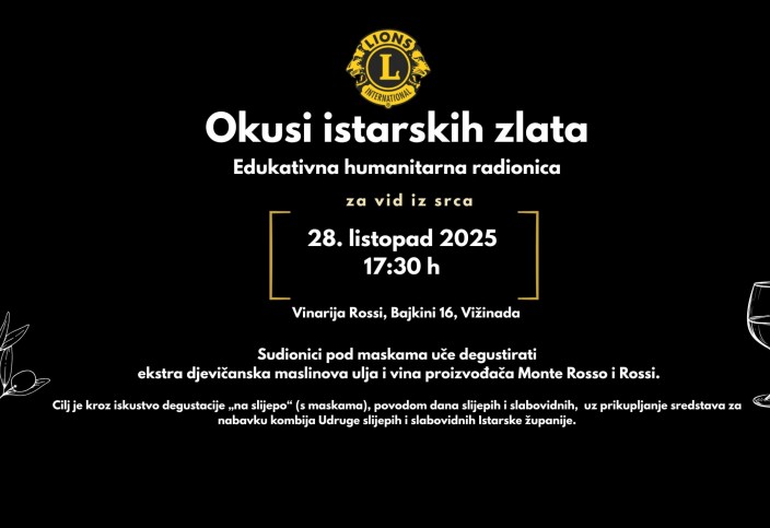 U organizaciji udruženih Lions klubova Novigrad, Poreč i Pula u Bajkinima u Vinariji Rossi održana je tematska edukativna radionica o ekstra djevičanskim maslinovim uljima i vinima; kako ih ispravno degustirati oslanjajući se na svoja osjetila, bez vida, pokriveni maskom. Kušanje maslinovog ulja i vina spoj je znanosti i umjetnosti – način da se kroz osjetila otkrije njegov karakter.