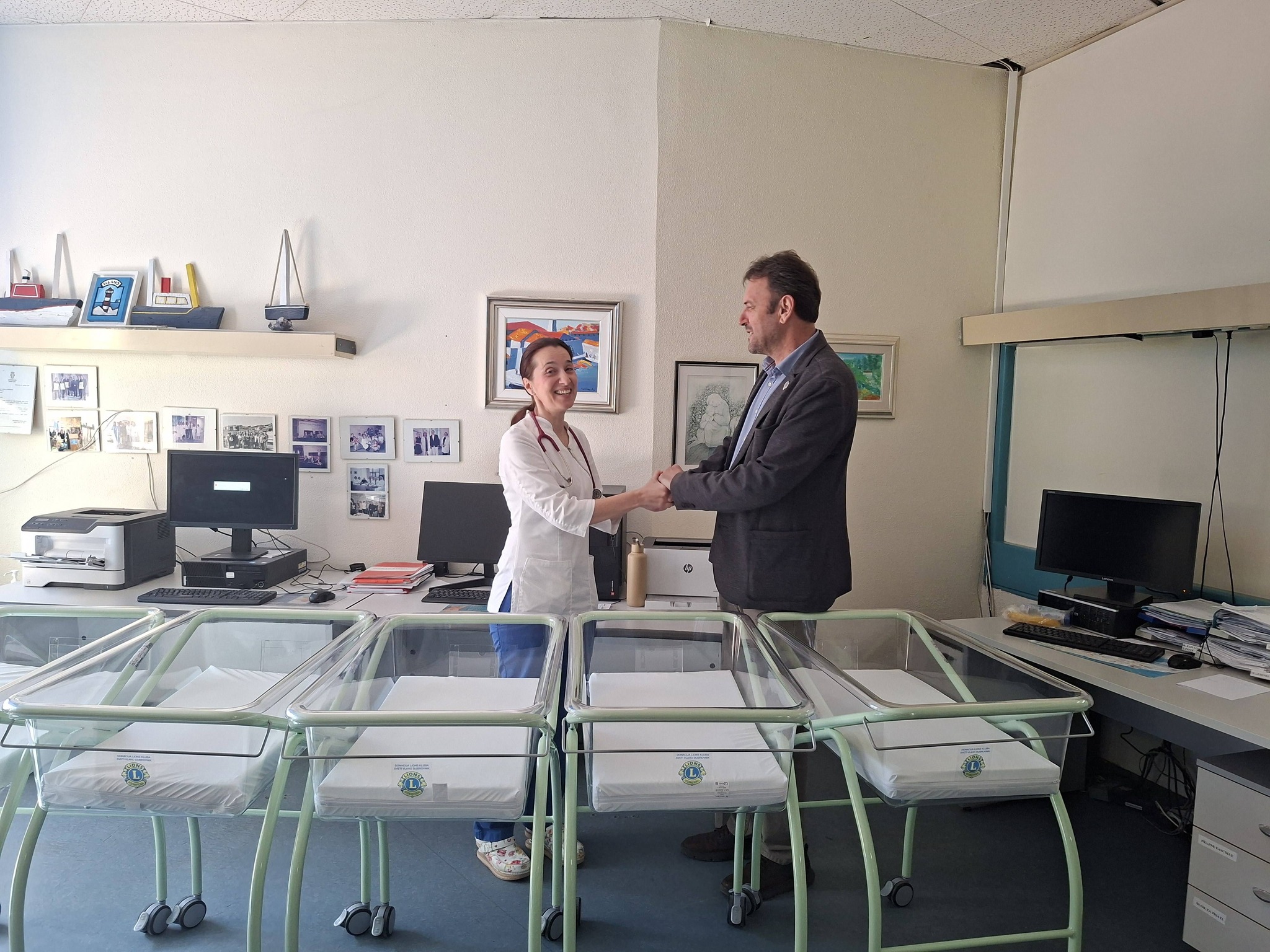 Predsjednik Lions kluba Sv. Vlaho, Miho Katičić uručio je dr. Dijani Grizelj Kalčić, voditeljici Odjela za pedijatriju Opće bolnice Dubrovnik, pet kolijevki za potrebe neonatologije dubrovačke bolnice. Sretna je to završnica božićne akcije "Srce pod povećalom" koja je lanjske godine za cilj imala upravo nabavku potrebnih kolijevki za novorođenu djecu u dubrovačkoj bolnici. Zahvaljujući donacijama velikodušnih vinara Pelješca i Konavala, te ostalim ukrasima, aranžmanima i slasticama koje su se našle na štandu Lionsa prikupljeno je 2.559,38 eura za kolijevke.