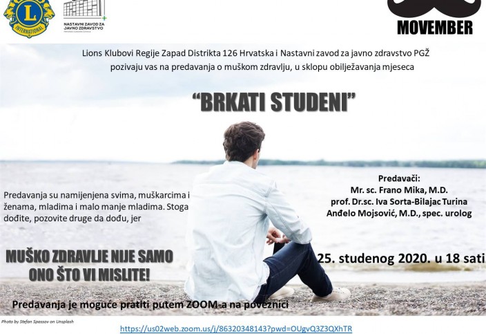 Lions Klubovi Regije Zapad Distrikta 126 Hrvatska i Nastavni zavod za javno zdravstvo PGŽ pozivaju vas na predavanja o muškom zdravlju, u sklopu obilježavanja mjeseca
