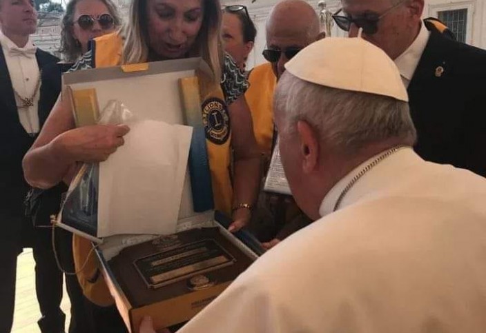 Danas je na Trgu svetog Petra Svetom Ocu Papa Franji predsjednica Vijeća guvernera Lionsa Italije Mariella Sciammetta dodjelila je najveće priznanje Lionsa plaketu Melvina Jonesa.