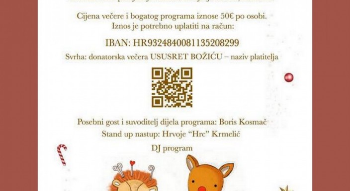 Uplate donacije na račun: IBAN HR9324840081135208299 / Svrha: donatorska večer Ususret Božiću - naziv uplatitelja