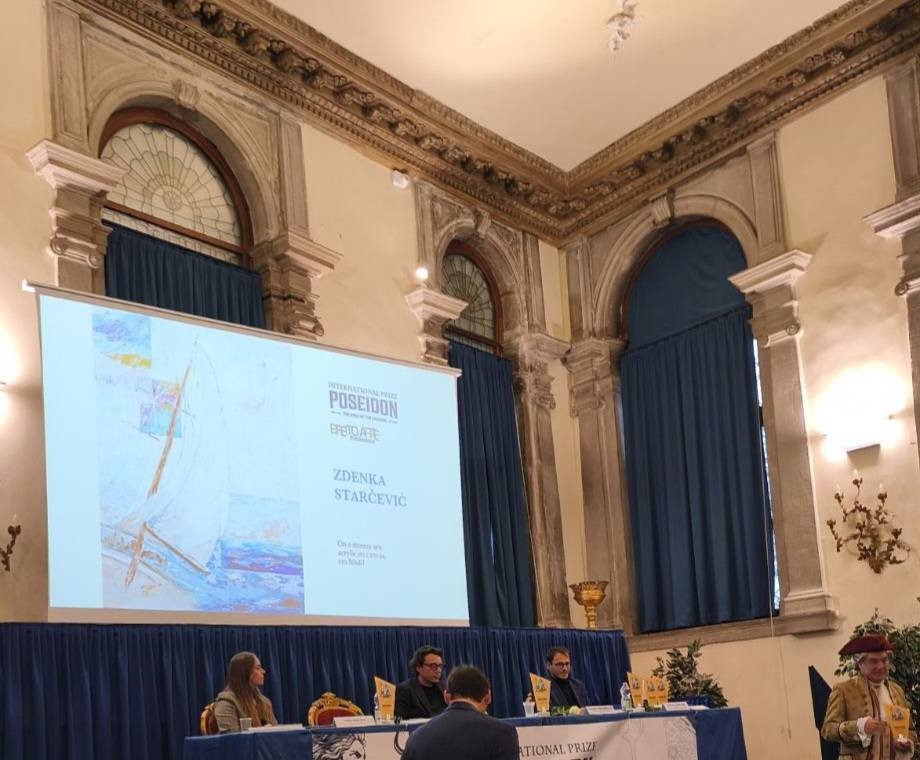 Poseidon, naziv je međunarodne najprestižnije nagrade što se dodjeljuje umjetnicima koji su se tijekom godine istaknuli svojim umjetničkim istraživanjem i stilskom izvrsnošću svojih djela. I upravo je to vrijedno priznanje, između 50 suvremenih umjetnika iz cijelog svijeta, dobila članica Lions kluba Korzo - Zdenka Starčević. Zahvaljujući svom dugogodišnjem umjetničkom izričaju i nizu zapaženih izložbi, rad riječke volonterke i humanitarke prepoznat je i potvrđen izuzetnim priznanjem kojeg cijene, poznaju i priznaju istinski ljubitelji likovne umjetnosti. Svečana dodjela nagrade Poseidon održana je u Veneciji, u predivnoj dvorani Scuola Grande de San Teodoro, a sudjelovali su umjetnici iz cijelog svijeta, Hrvatske, Meksika, SAD, UK, Francuske, Španjolske, Njemačke, Kanade, Grčke, Argentine i još niza drugih zemalja.