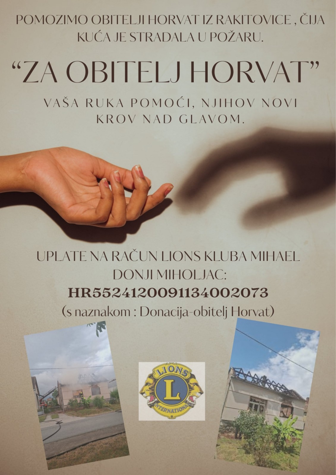 LC Mihael Donji Miholjac pokrenuo je humanitarna akcija pod nazivom „Za obitelj Horvat“ 21.8 2025. s ciljem prikupljanja novčane pomoći za obitelj Horvat iz mjesta Rakitovica. Naime, obitelj Horvat je preko noći, zbog požara, ostala bez krova nad glavom i hitno im je bila potrebna pomoć. Klub je organizirao akciju prikupljanja dobrovoljnih priloga te uz pomoć prijatelja i obitelji organizirani su nogometni turnir i koncert tamburaških sastava iz okolice. Akciji su se pridružili i donjomiholjački obrtnici i privrednici. Akcija je trajala do 1.10.2025. U akciji je prikupljeno 33.918,84 eura. Cijeli iznos obitelj Horvat utrošila je na kupovinu nove kuće.