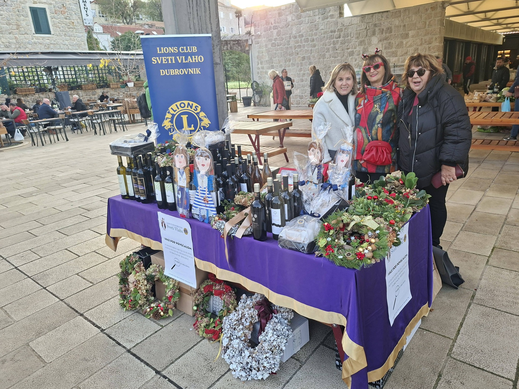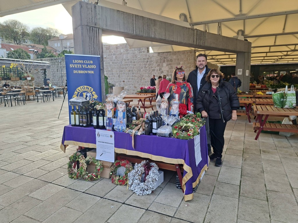 Humanitarna prodaja vina dubrovačkog kraja, božićnih ukrasa i slastica koje su napravile članice LC sveti Vlaho održana je 19. i 20.12. na placi u Gružu.