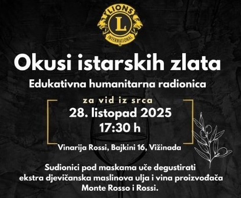 U organizaciji udruženih Lions klubova Novigrad, Poreč i Pula u Bajkinima u Vinariji Rossi održana je tematska edukativna radionica o ekstra djevičanskim maslinovim uljima i vinima; kako ih ispravno degustirati oslanjajući se na svoja osjetila, bez vida, pokriveni maskom. Kušanje maslinovog ulja i vina spoj je znanosti i umjetnosti – način da se kroz osjetila otkrije njegov karakter.